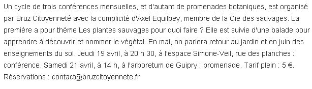 Accueil > Association > Revue de presse > conférences sur la nature et promenades botaniques